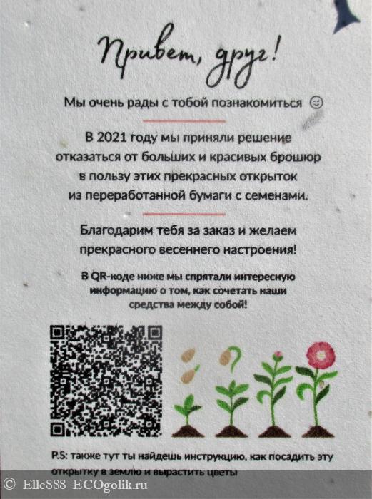 Но открытка не простая: она сделала из переработанной бумаги, внутрь которой помещены семена цветов
