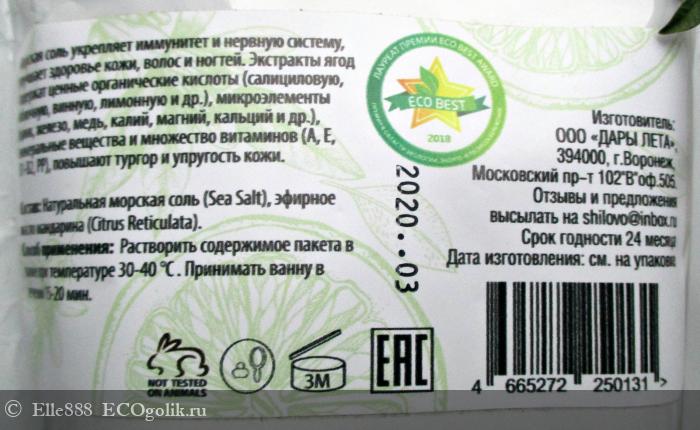 Аромат соли - это очень яркий и насыщенный аромат мандарина. Меня, действительно, удивило насколько концентрированный и сильный аромат у этого средства.