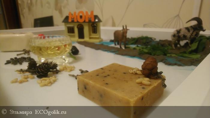 Привет! Теперь в моей семье все, от маленького до старенького, знают как, из чего и для кого изготавливают мыло "Кедровое" от Мастерской Олеси Мустаевой. Вся семья с интересом слушала, что недалеко от нашего города Казани, за просторами Раифского мужского монастыря и волжско-камского заповедника пасутся козы, натуральное и свежее молоко которых поступает на производство МОМ. На основе козьего молока была создана целая серия нежного, мягкого мыла, которое подходит для любого типа кожи, включая самую капризную. Мыло "Кедровое " с жмыхом кедра и маслом пихты сибирской - одно из моих любимых! В его составе козье молоко соединяется с ценнейшими маслами(оливковым,кокосовым, пальмовым, касторовым, подсолнечным, карите), сметаной, жмыхом кедра и эфирным маслом пихты сибирской. Цвет мыла натуральный, видны вкрапления молотых кедровых орешков.