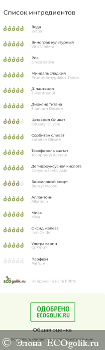 Благодаря маслу виноградной косточки, рисовым отрубям и миндалю, BB-крем обладает отличными увлажняющими и питающими свойствами.