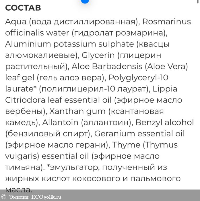 - дезодорант на основе АЛЮМОКАЛИЕВЫХ КВАСЦОВ, благодаря чему нет запаха пота