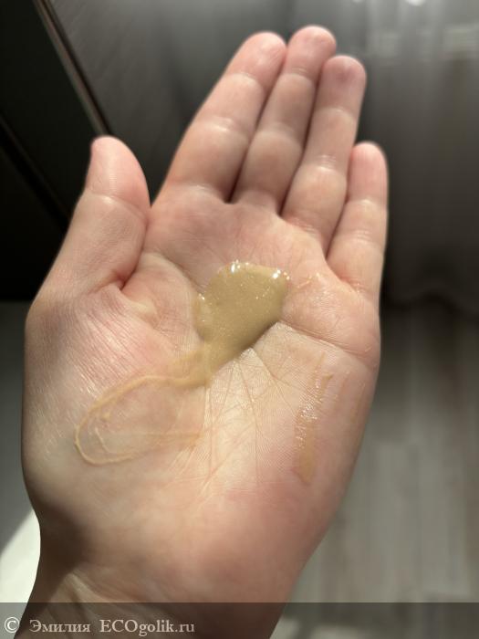Видно, как стекает по руке. Он легко распределяется на коже, хорошо впитывается и создает, как хорошо написал производитель, «дает сатиновый эффект».