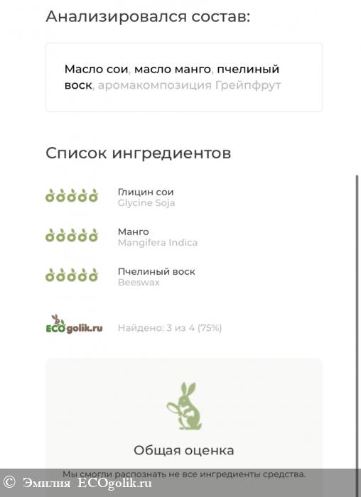 ароматическая композиция не распозналась в составе, но зная, что бренд использует только натуральные компоненты, сомнений в качестве состава у меня не возникло