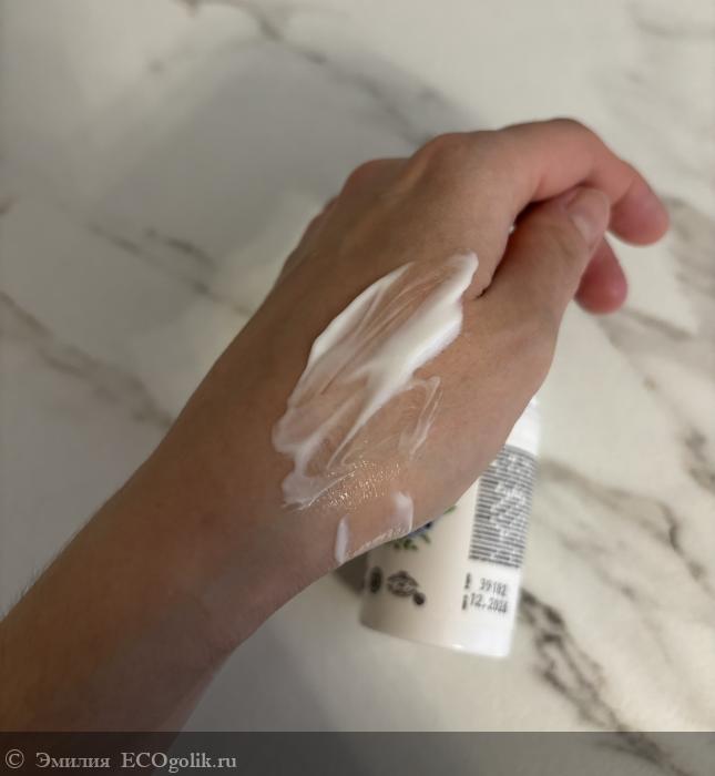 У крема средняя густота. Хорошая текстура, легко наносить на кожу , легко впитывается , приятно скользит по коже