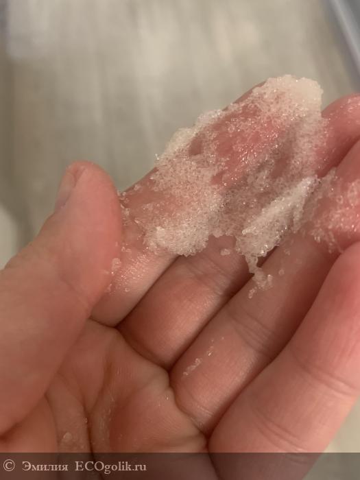 Текстура желеобразная. Скраб не расстекается благодаря этой структуре. Даже немного тянется как тянучка ))))