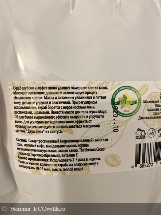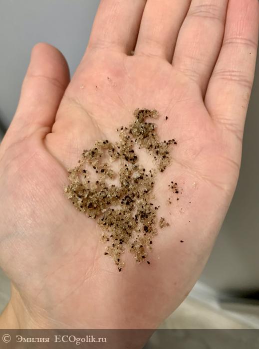 Скраб достаточно абразивный, рассыпчатый. Масло в составе есть, но мне его мало