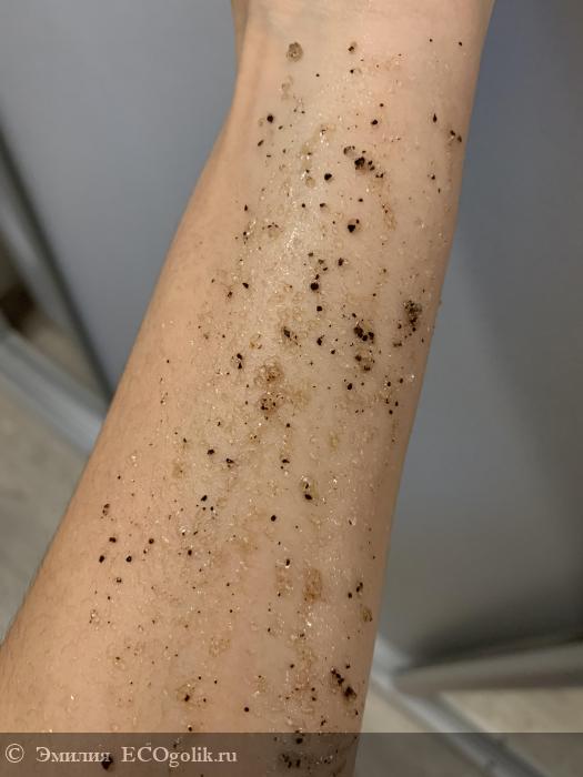 Напитанной ещё назвать нельзя , скраб легко смылся водой, не оставив на коже масел. Поэтому использование крема для тела после него для меня в обязательном порядке