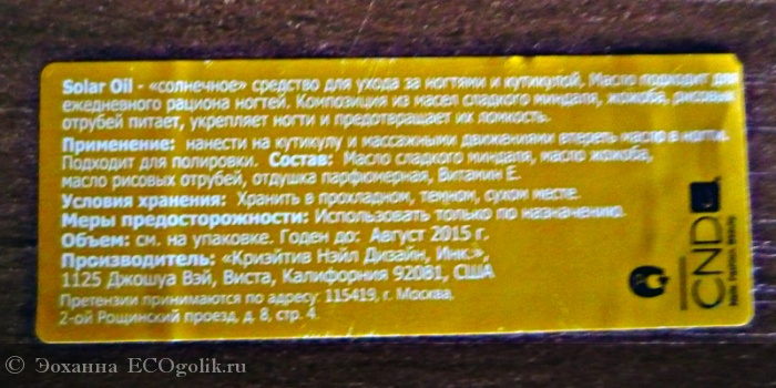 Пусть креатив(CND-Creative Nail Design) и не позиционируется эко-производителем, но это масло заслужило отзыв тут. Более того- оно считается профессиональным.