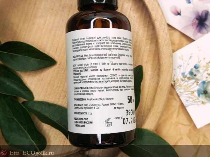 Так что тут никаких сомнений о натуральности продукта не было, и не может их быть. Гидролат мяты от бренда Siberina - это 100% натуральный косметический продукт.