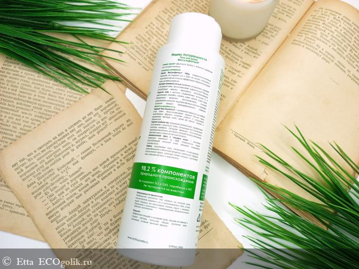 Состав геля для душа от бренда Индекс натуральности довольно богатый на полезные для кожи компоненты. Производитель указывает, что в составе 98,2% натуральных компонентов, но например, те же консерванты допустимы в изготовлении натуральной косметики. Бренд Индекс натуральности и их косметика имеют все необходимые для этого сертификаты.