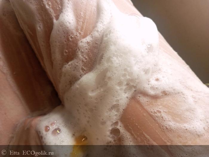 Простите за тавтологию, но гель имеет классическую гелевую текстуру. Он густой, не норовит убежать с мокрой ладони или влажной мочалки. Также мне очень импонирует то, что гель полностью прозрачный, без красителей в составе. Хоть этот продукт и смывается с кожи, но все равно, когда чистый состав - это намного лучше, чем с добавлением не таких уж и нужных компонентов.