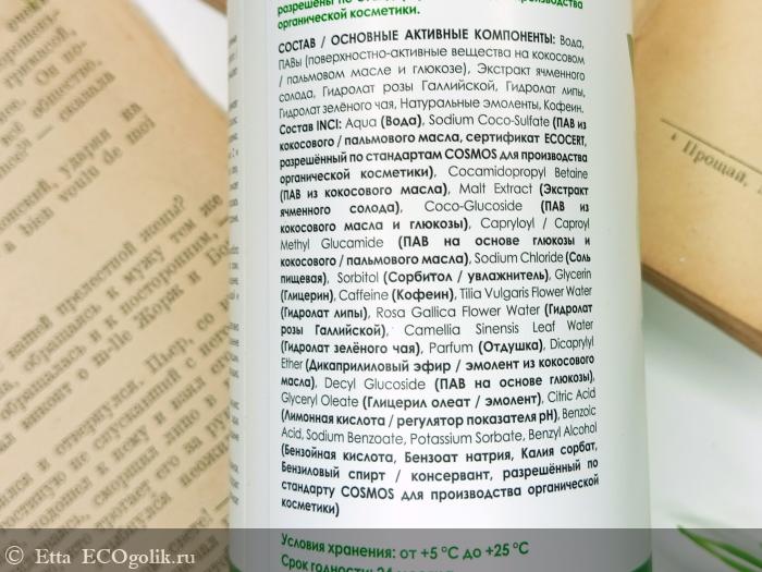 - Натуральный состав на мягких ПАВах. В составе много увлажняющих гидролатов + есть полезный для кожи кофеин