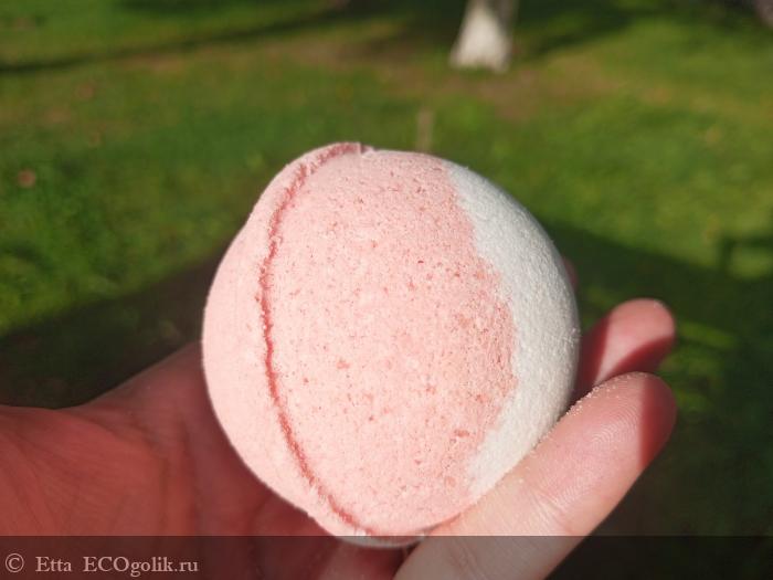 Аромат у сухой бомбочки клубничный, напоминает натуральную ягоду с ее характерной легкой кислинкой. После растворения бомбочки в воде аромат кажется похожим на сливочный клубничный йогурт. Очень натуральный аромат, но когда лежишь в ванной, он активно ощутим только минут 5, а оставшееся время принятия ванны уже еле уловим. Но вот после легкого душа простой водой, нежнейший аромат клубники остается на коже еще на пол часа.