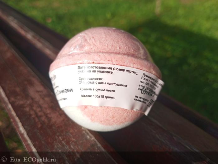 Здесь же - крупно напечатана дата производства бурлящего шара, указан срок годности, масса бомбочки и т.д. Хочу отметить отдельным плюсом то, что весь текст на упаковке не мелкий, и хорошо читается.