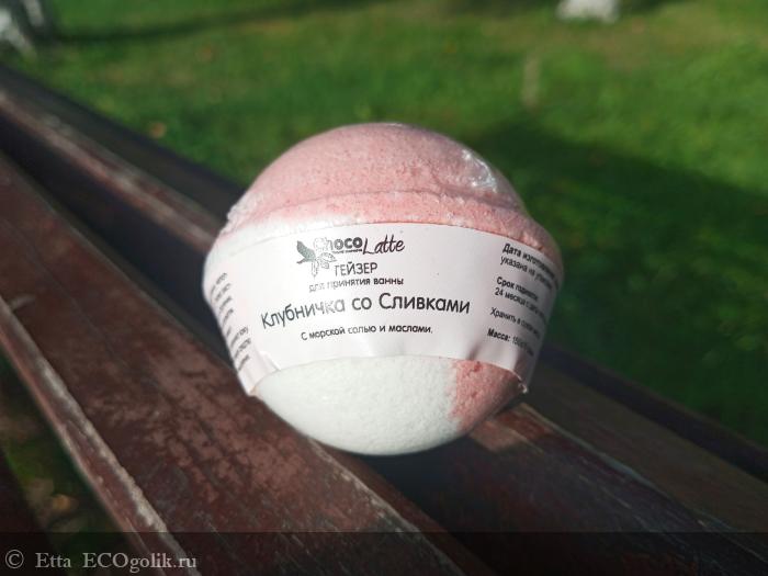 У бренда Chocolatte представлено большое количество гейзеров для ванн, причем есть как просто ароматические, так и макси-размера, гейзеры с добавками и гейзеры с игрушками. С продукцией бренда я уже знакома, а вот с их бурлящими шарами - только косвенно. Настала пора исправлять эту ситуацию, и из большого ассортимента я выбрала несколько бомбочек. Одной из них стала "хитовая" с очень аппетитным названием "Клубничка со сливками". В общем и целом, сегодня я хочу рассказать Вам про нее.