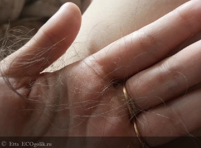 По эффективности масла скажу так, что при применении на протяжении 1,5 месяцев (дважды в неделю) уже есть очень заметный результат. Волосы сыпались просто безбожно, например, после расчесывания если я проводила рукой по волосам (половина волос), то на руке оставался вот такой вот комок выпавших волос + еще и на расческе были волоски. Конечно, когда такое видишь, когда после каждой помывки волос из слива достаешь чубакку, и волосы просто везде - самооценка просто падает вниз, и помимо основных проблем в жизни еще и начинаешь о своих кудряшках переживать.