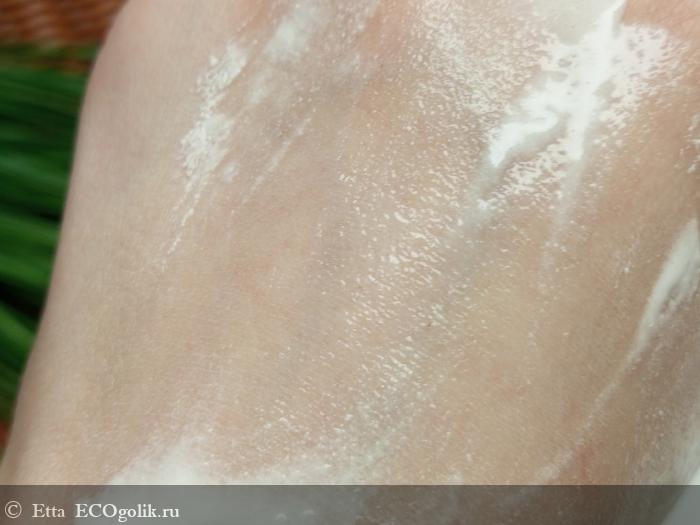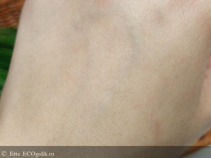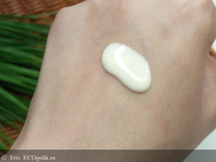 По текстуре он жидковатый, при распределении по коже он чуть-чуть подтаивает, но кажется будто слегка расслаивается на воски и остальные составляющие, и из-за этого он распределяется по коже не скользя. И если честно, каждый раз меня это напрягает, т.к. крем приходится втирать.