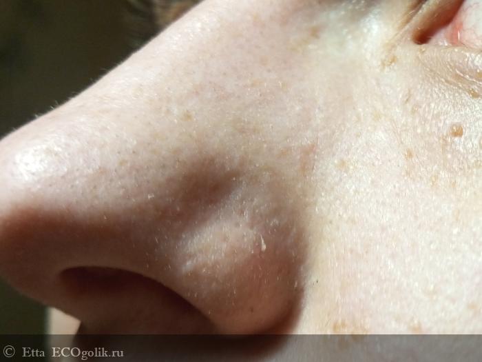 - Уменьшает количество черных точек, сужает поры