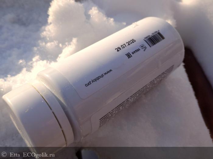 Мне очень понравился формат упаковки этой пудры, так как она упакована в "бутылек" из прочного непрозрачного пластика, с очень минималистичным дизайном. На круговой этикетке представлена полная информация как о самом продукте, так и о производителе.