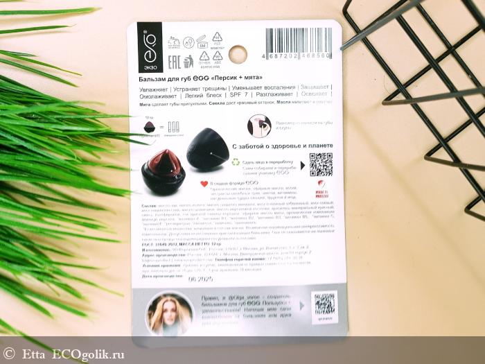 Etta: Натуральный оттеночный бальзам для губ Exo Egg Персик+Мята - цвет, холодок, прекрасный состав и красивые ухоженные губы