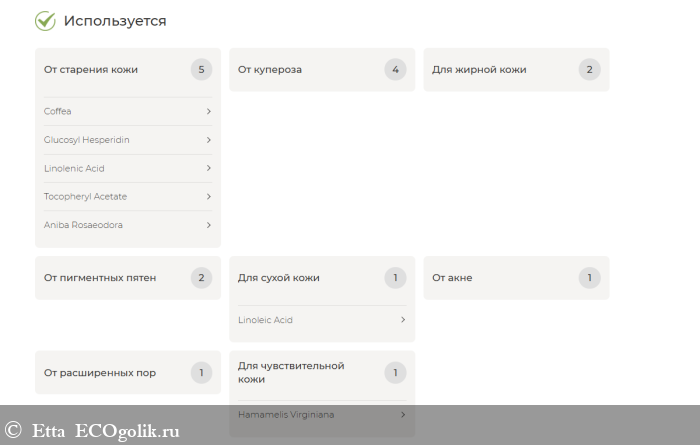 Благодаря подписке PLUS на экоголике можно посмотреть, какие компоненты за что отвечают. Я выбрала то, что важно для кожи вокруг глаз, ну и для меня в целом.