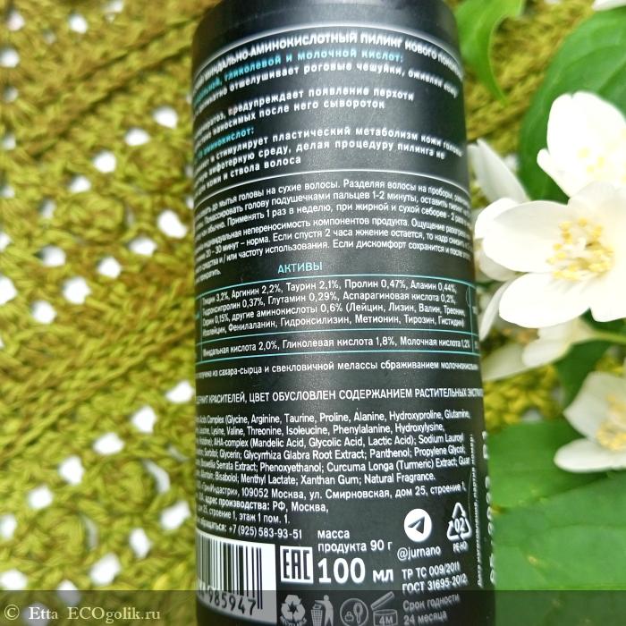 На обратной стороне представлена вся нужная для потребителя информация. И про сам пилинг, и про производителя.