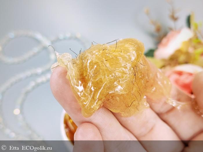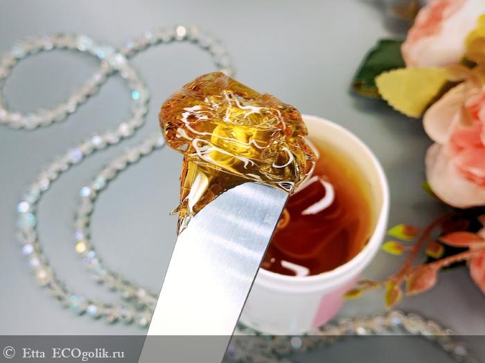 Цвет: темно-янтарный. Возможно, я не права, но по опыту хочу сказать, что плотные пасты светлого цвета (в составе которых нет красителей) фактически быстро таят. Возможно, это как-то связано с формулой состава.