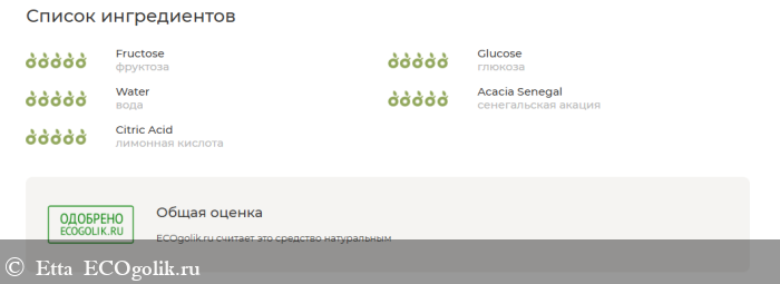 Фруктоза, глюкоза, вода, сенегальская акация, лимонная кислота