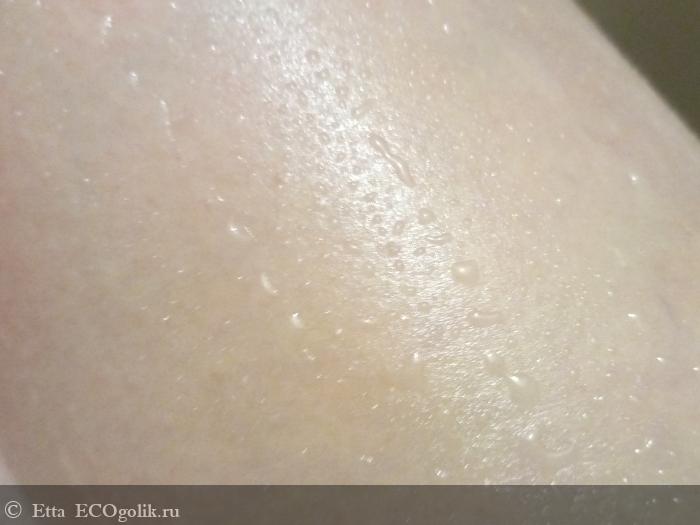 При распределении скраба по влажной коже заметно ощущаются масла. Скрабирующие частицы воздействуют на кожу довольно деликатно, на 6 по 10-бальной шкале. Но при массаже ощущается эффективность сахара, кожа слегка краснеет. Благодаря такому улучшению микроциркуляции крови как раз кожа становится более гладкой и упругой, а также при регулярном использовании скрабов уходит "апельсиновая корка", если она, конечно, имеется.