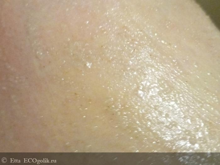 Смывается скраб не очень комфортно, так как кожа покрывается маслянистой гидрофобной пленкой. Я люблю масла в скрабах, но такой эффект мне не по нраву. Да, так масла более продолжительно воздействуют на кожу, но ощущать себя "курочкой в масле" не всегда комфортно. Особенно когда пошла в душ утром, и нужно быстренько одеться. А ты в масле.