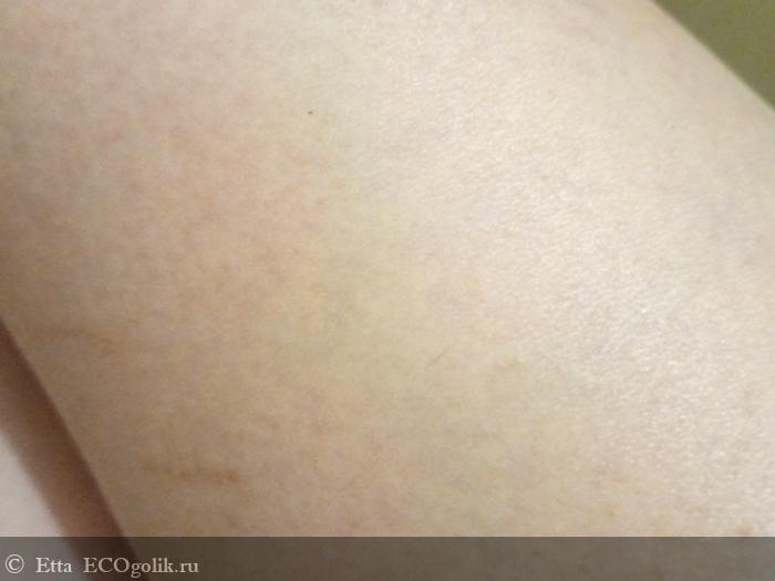 На фото выше - кожа после душа, но ДО применения скраба. Думаю, все понятно по фото. На фото ниже - необходимое количество скраба на 1 бедро + примерно половина от этой порции требуется на голень. Так что скраб довольно экономичен.