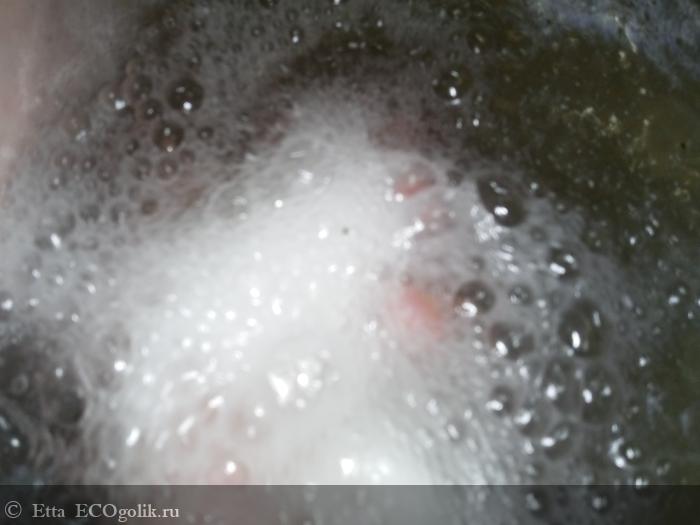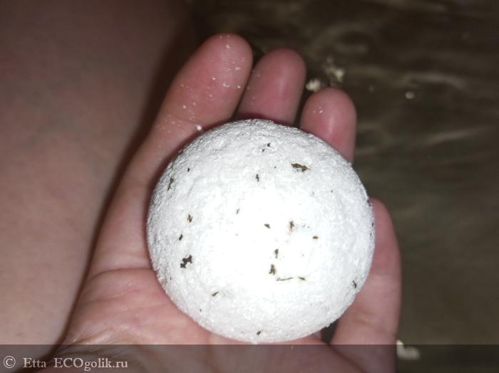 А вот про другой спецэффект производитель не предупреждал, так что для меня он оказался приятным сюрпризом. Повторюсь, я люблю мяту, ну и в жару +32°С в тени это приятно. У нас сейчас духота за окном жуткая, дома вентилятор даже не спасает, а я ложусь в теплую ванну, опускаю в нее бурлящий шарик, и чувствую как вода становится прохладнее...
