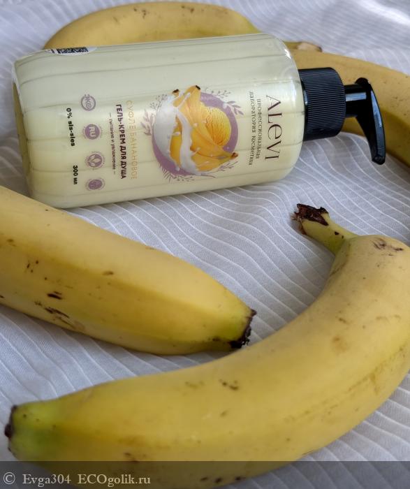 Летом хочется всегда больше фруктов, ярких оттенков и поэтому мой выбор пал на Крем-гель для душа «Суфле банановое» от AleVi.