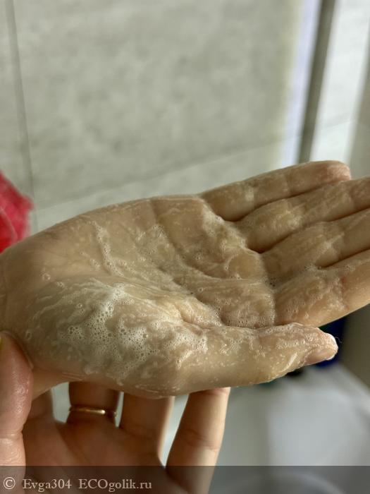 Пенится средство довольно слабо, зато наносится легко, распределяется по коже тонким приятным слоем и быстро смывается, не оставляя липкой плёнки.
