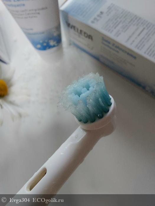Производитель рекомендует 2 см зубной пасты нанести на сухую (!) зубную щётку.
