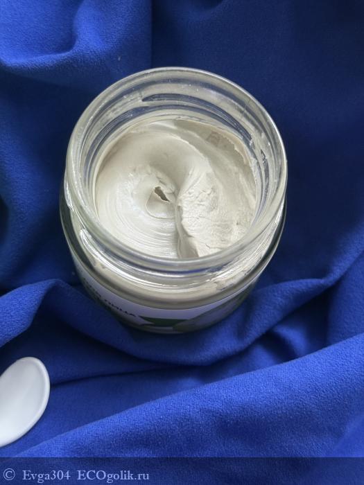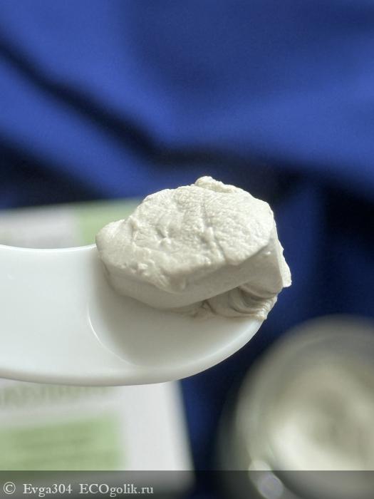 Под отвинчиваемой крышечкой мы видим серо-голубоватую кремовую глину. Она гладкая, легко набирается на шпатель.