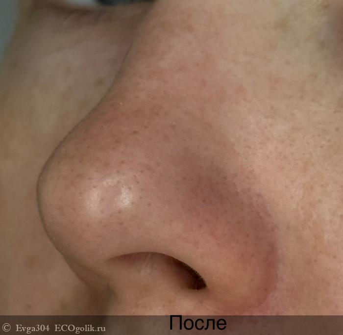 Комплекс компонентов маски предотвращает появление чёрных точек и акне благодаря своим очищающим и противовоспалительным свойствам. На носу стало намного меньше черных точек, чем было до применения маски, а на подбородке вообще исчезли