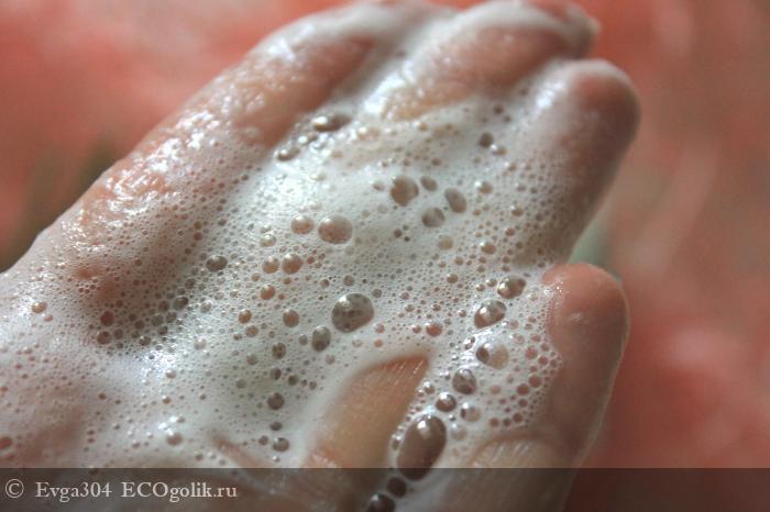 Теперь, когда я намыливаю руки, преподношу их к носу и наслаждаюсь ароматной пеной, которая, кстати, шикарно пенится, даёт такую плотную, сливочную и пушистую пенку.