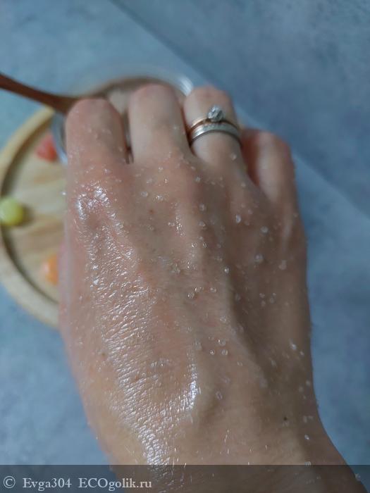 По сравнению с клубничным скрабом, тут скрабирующие частички гораздо дерзкие, получается такой мощный дренаж, но при этом не травмируется кожа.