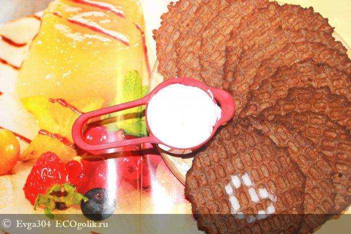 Отдельно сбиваем миксером кокосовое молоко и сироп и подаём к вафелькам.
