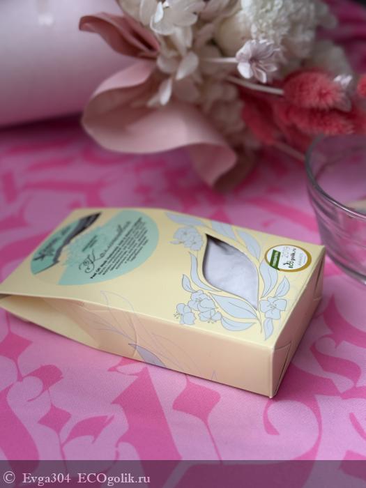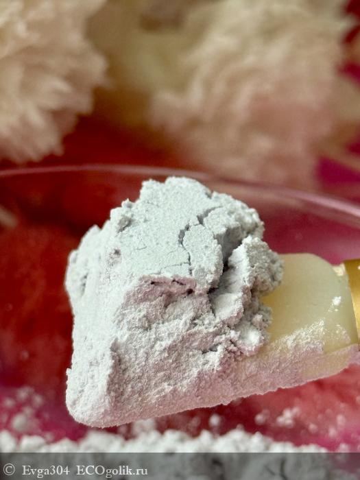 Порошок мелкого помола, с нежным сиреневым оттенком и совершенно без отдушек.