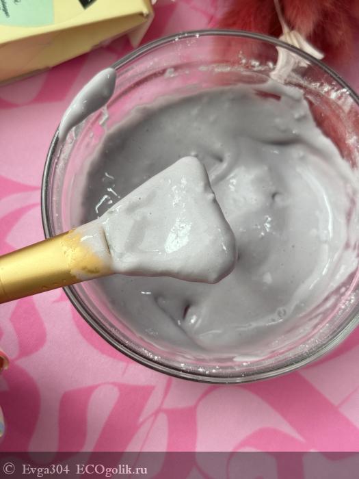 Маска получилась блестящая, гладкая, быстро не засыхает, можно успеть сфотографировать ее.