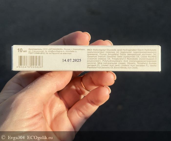 Текстура густая, комфортная — блеск не растекается, не скатывается в уголках губ, не образует липкой пленки.