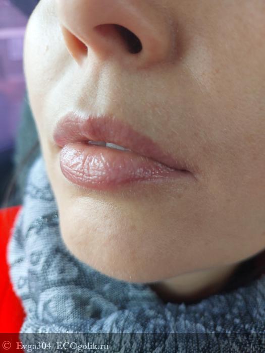 Держится он хорошо на губах, не скатывается в полоску, не сушит губки, а наоборот очень даже ухаживает за ними.