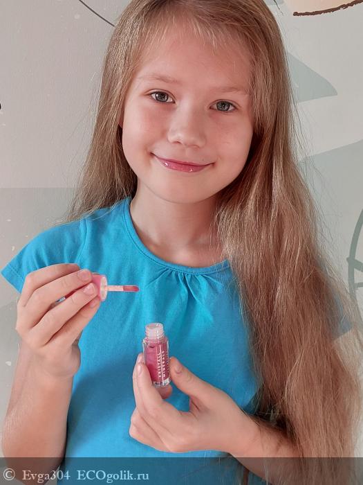 Дочке очень понравился сам оттенок блеска и особенно то, как он красиво смотрится на губах с переливом.