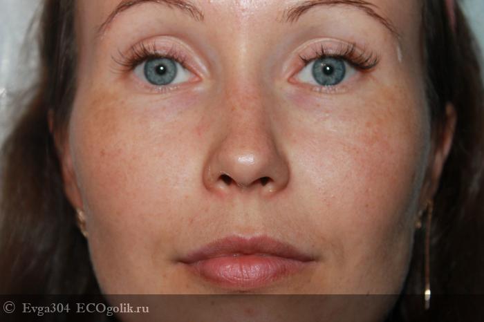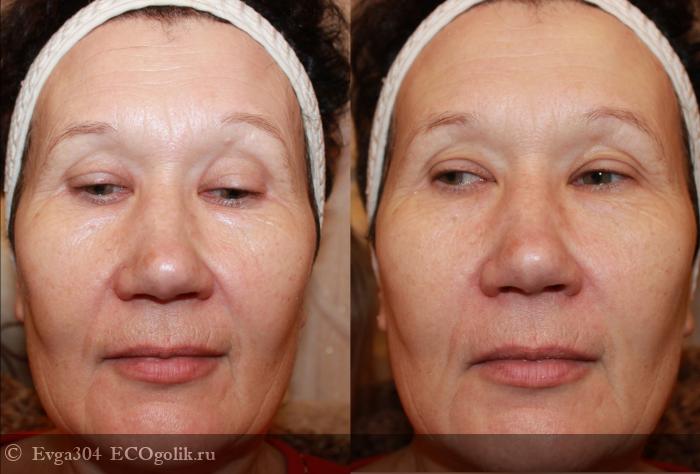 Если присмотреться в зеркало, то замечаем ровный светлый тон лица и мимические морщины стали менее видимыми.