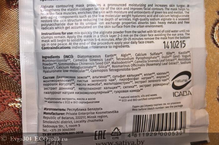 - Альгинатные маски от Sativa предотвращают раннюю старость и «изнашивание» кожи, активизируя процессы регенерации клеток, напитывают кожный покров полезными веществами и элементами.