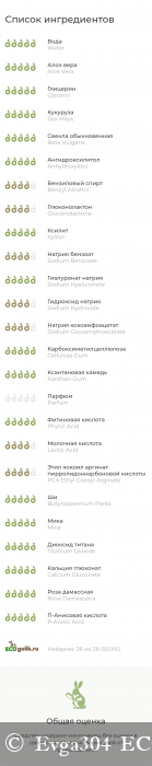 Вода, сок алоэ*, цветочная вода розы дамасской*, глицерин, ксилитилглюкозид, гидролизованный кукурузный крахмал, экстракт свёклы, ангидроксилитол, бензиловый спирт, глюконолактон, ксилитол, натрия бензоат, натрия гиалуронат, натрия гидроксид, натрия кокоамфоацетат, камедь целлюлозы, ксантановая смола, отдушка, фитиновая кислота, гидролизованные протеины люпина, молочная кислота, этил кокоил аргинат пирролидон карбоновой кислоты, масло ши*, мика, диоксид титана, кальция глюконат, масло цветков розы дамасской, п-анисовая кислота.