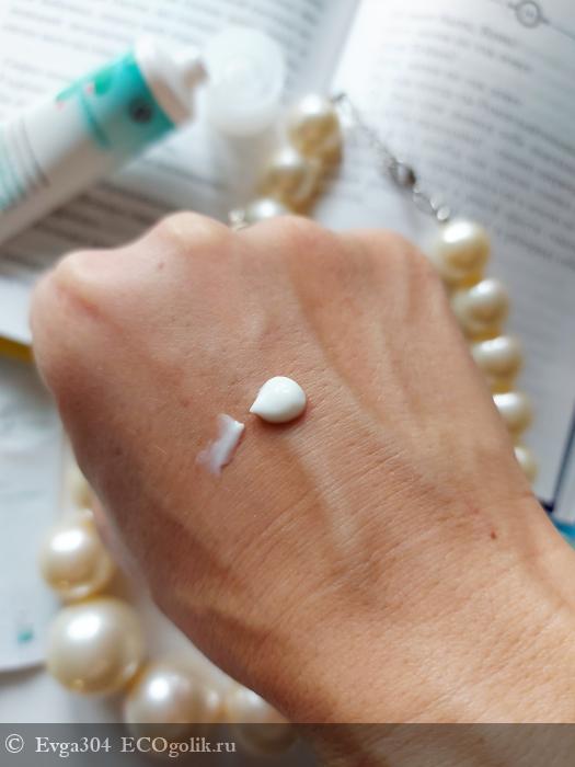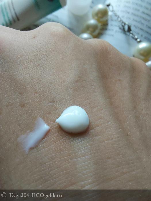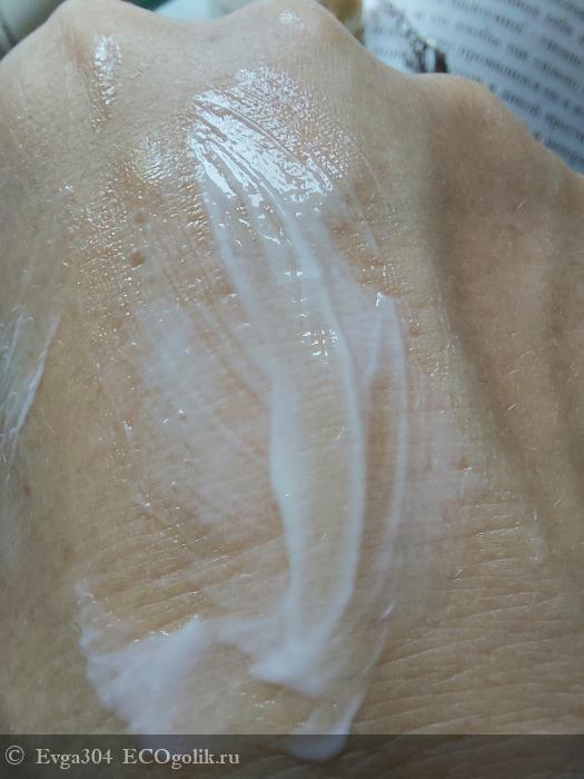 Консистенция крема гладкая, почти флюидная, белого цвета. Текстура лёгкая, воздушная. Аромат слегка цветочный вперемешку со спиртом.