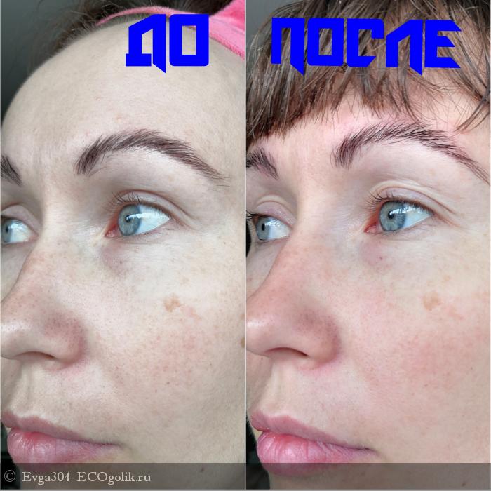 Пигментные пятна и чёрные точки посветлели, носогубка разгладилась.